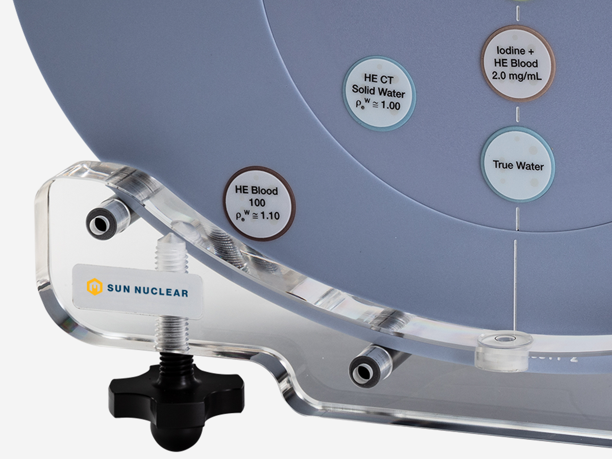 The Solid Water® HE base is compatible with two sets of rods for double duty as multi-energy CT QA as well as TPS calibration.